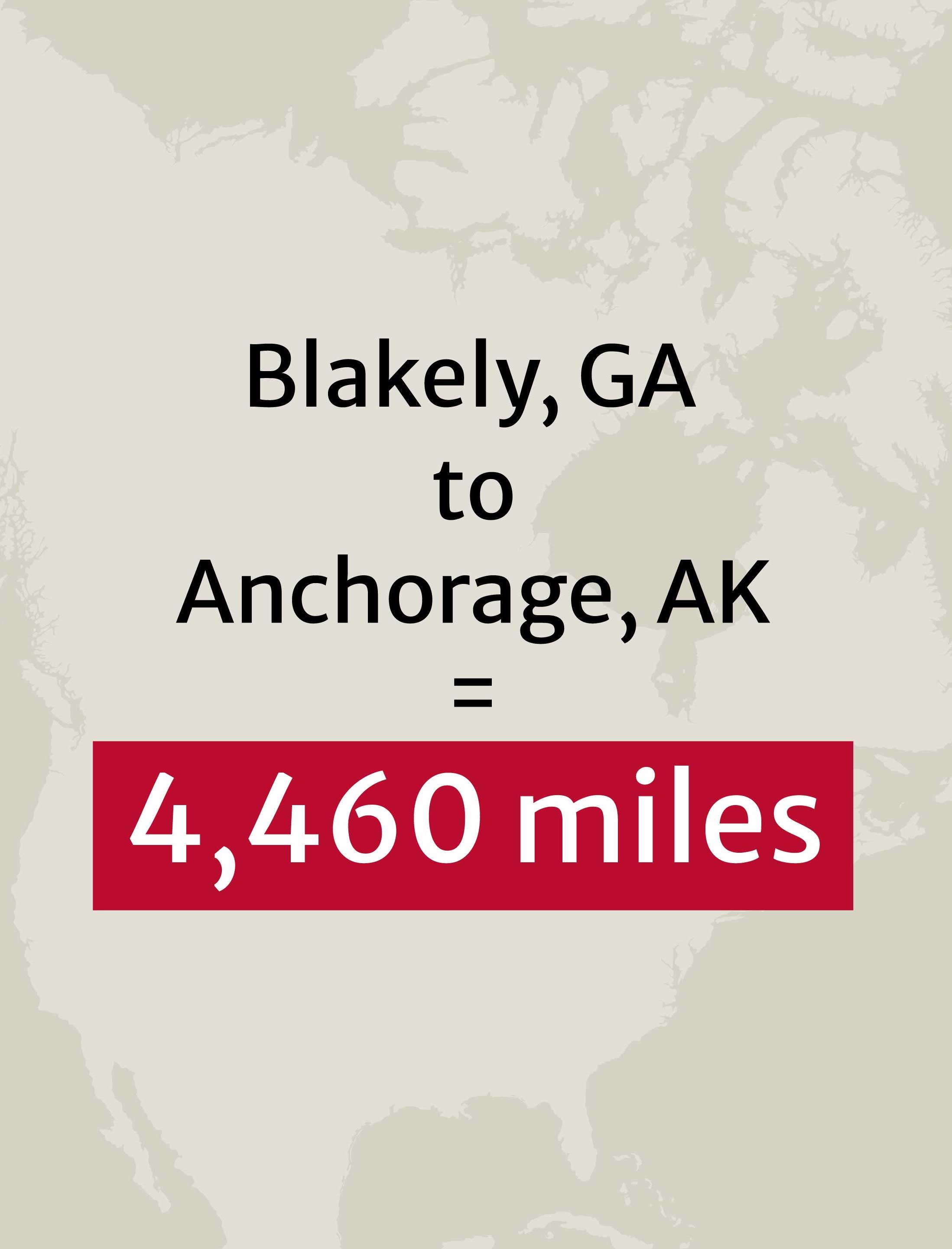 The city of Blakely in the Southwest corner of Georgia is about as far from the Alaskan backcountry as one can get in every way that counts – distance, climate, population. (Spoiler alert: Blakely is warmer and has more people. In fact, the population of Blakely – 5,371 as of 2021 – outnumbers its distance from Anchorage, Alaska, by 911 souls.)